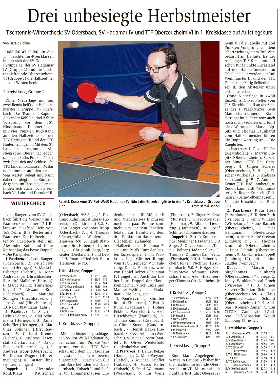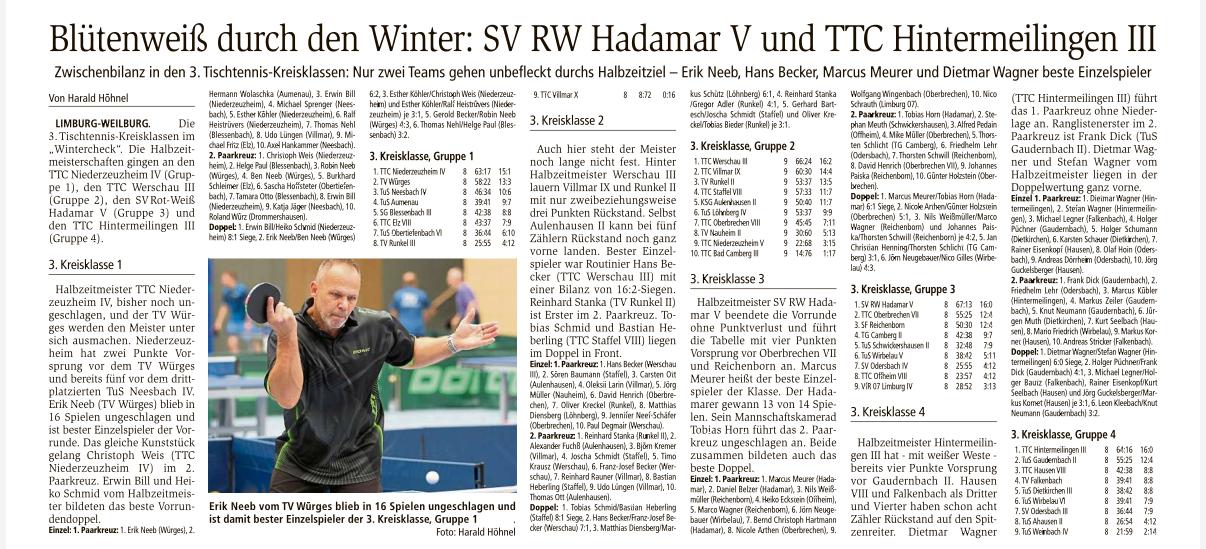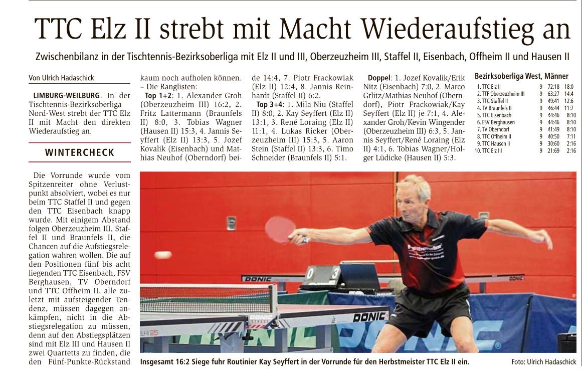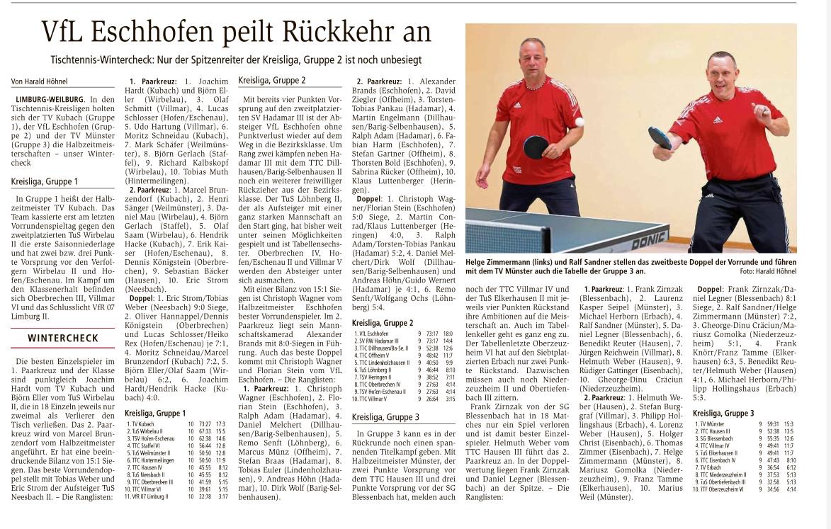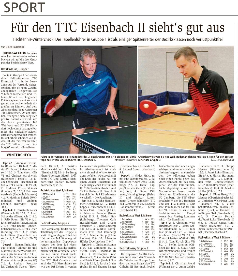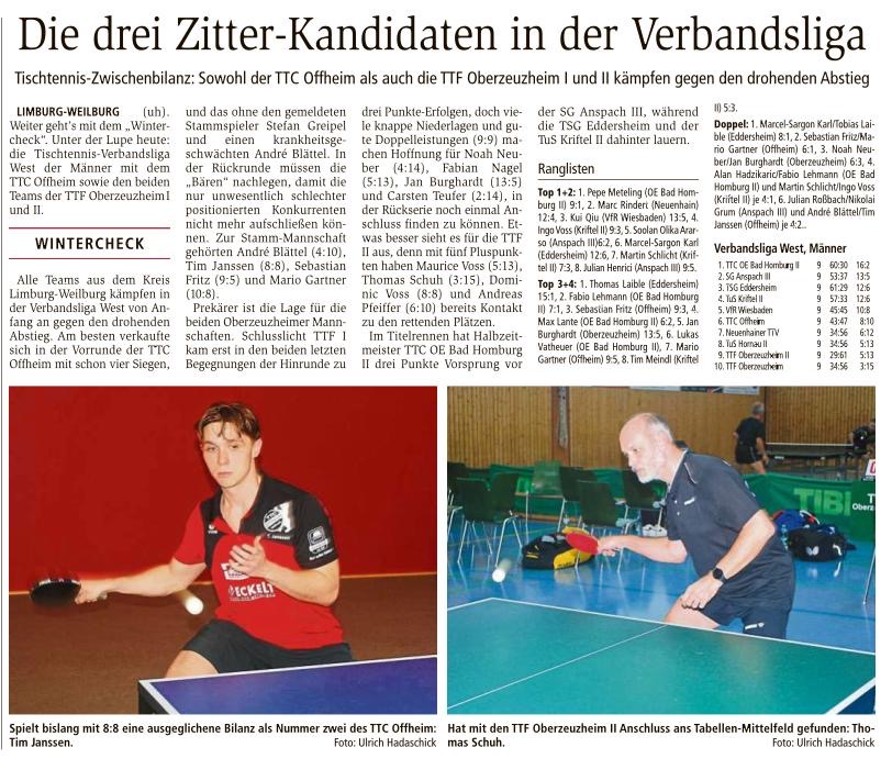 TTC Offheim 1 – Verbandsliga Weilburger Tageblatt 20.02.2019